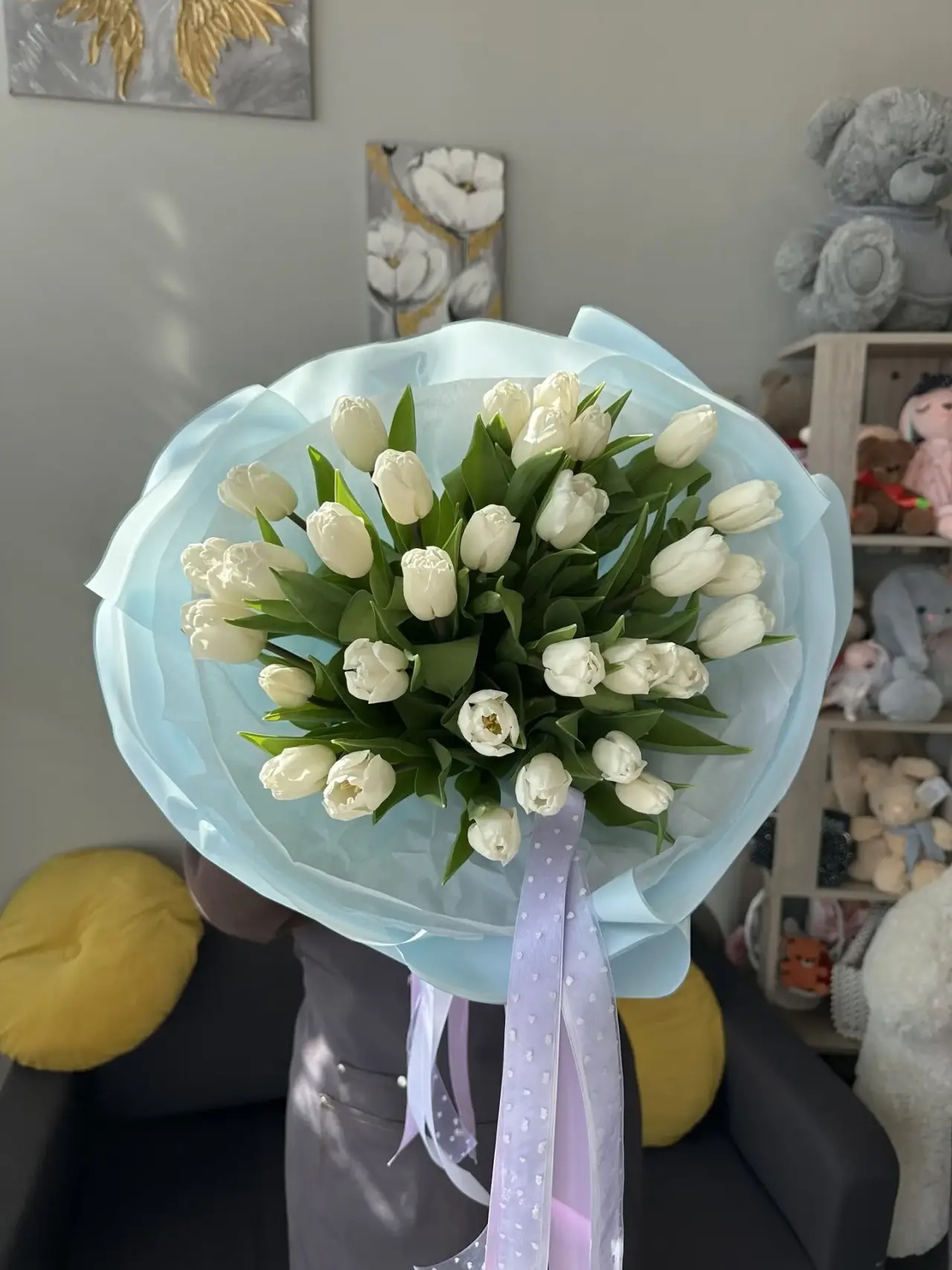 Гладкие тюльпаны разных цветов на выбор в авторской упаковке, количество тюльпанов тоже можно регулировать. Наши букеты - это воплощение самой любви. В каждом лепестке теплится нежность, в каждом сочетании цветов - история о чувствах. Эти композиции созданы, чтобы передавать искренние эмоции, превращая простые моменты в волшебные. Пусть ваш подарок станет символом тепла, нежности и бесконечной романтики🫴🏻🤍